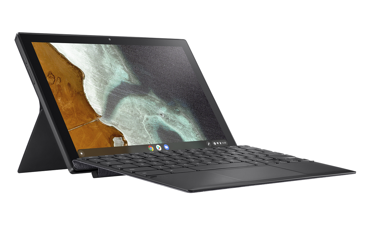 As the names suggest, the Chromebooks handle their hybrid-ness (hybridicity?) in slightly different ways to meet the distinct needs of potential buyers. With the Flip CM3, Asus provides a laptop with a 360-degree hinge that allows it to switch from a traditional laptop to tablet mode, tent mode, and even completely flat mode. What the 12-inch touchscreen lacks in resolution (1,366x912), it makes up for in viewing space in portrait mode thanks to narrow bezels and a 3:2 aspect ration.
